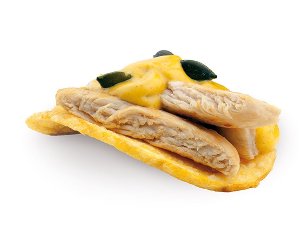 Slabs extra-dicken Chips, Hühner Und Sauce